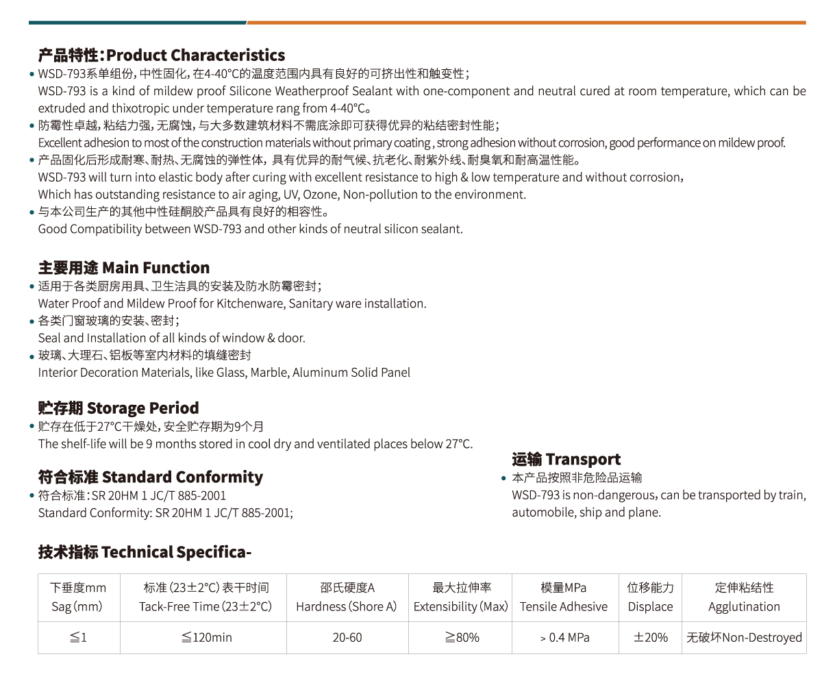 WSD-793 Neutral mildewproof silicone weatherproof sealant
