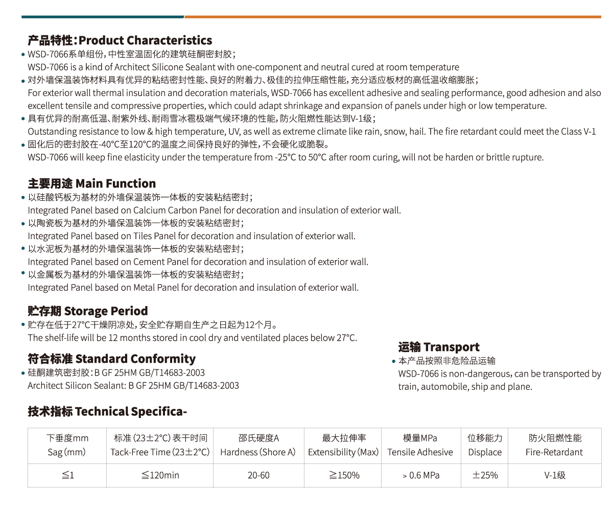 WSD-7066 Project sealant for exterior wall insulation and decoration